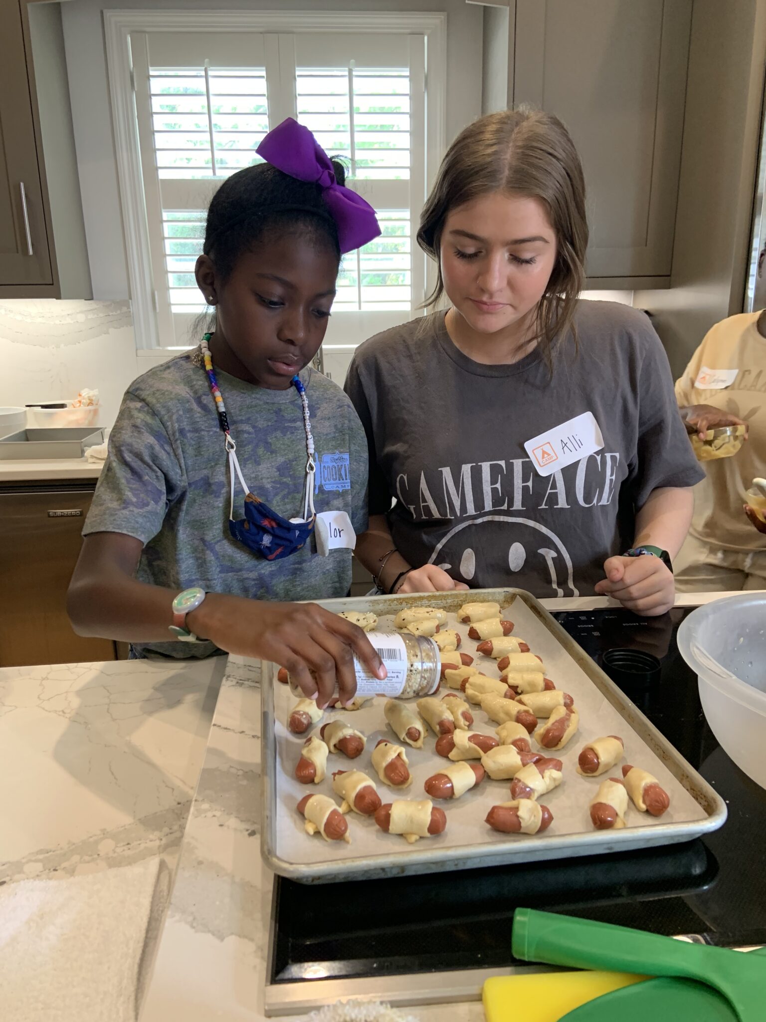 And no picnic would be complete without Pigs in a Sleeping Bag and Peanut Butter S’mores Bars. In the kitchen, campers made another side dish and their dessert for lunch. A fun twist on Pigs in a Blanket and the classic s’more.